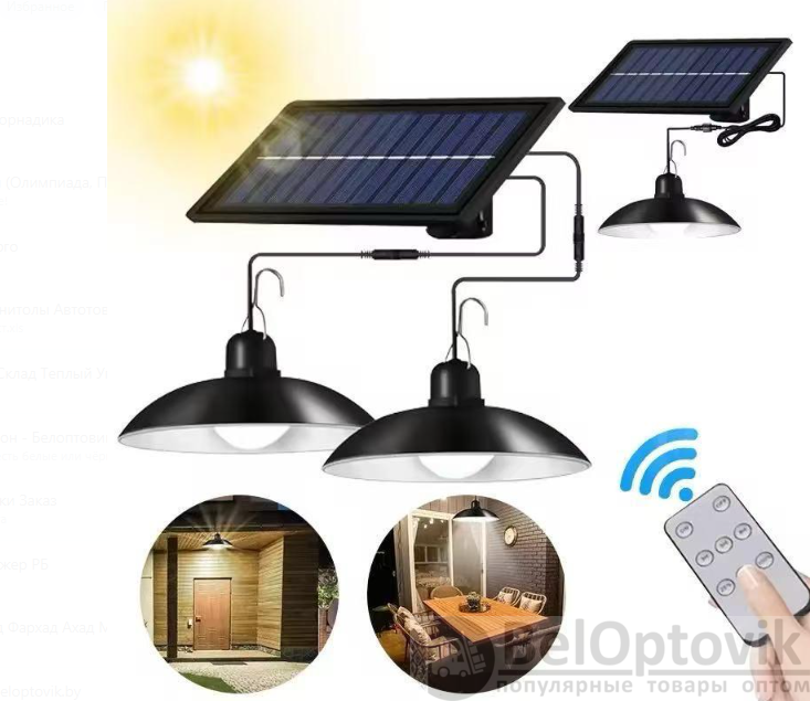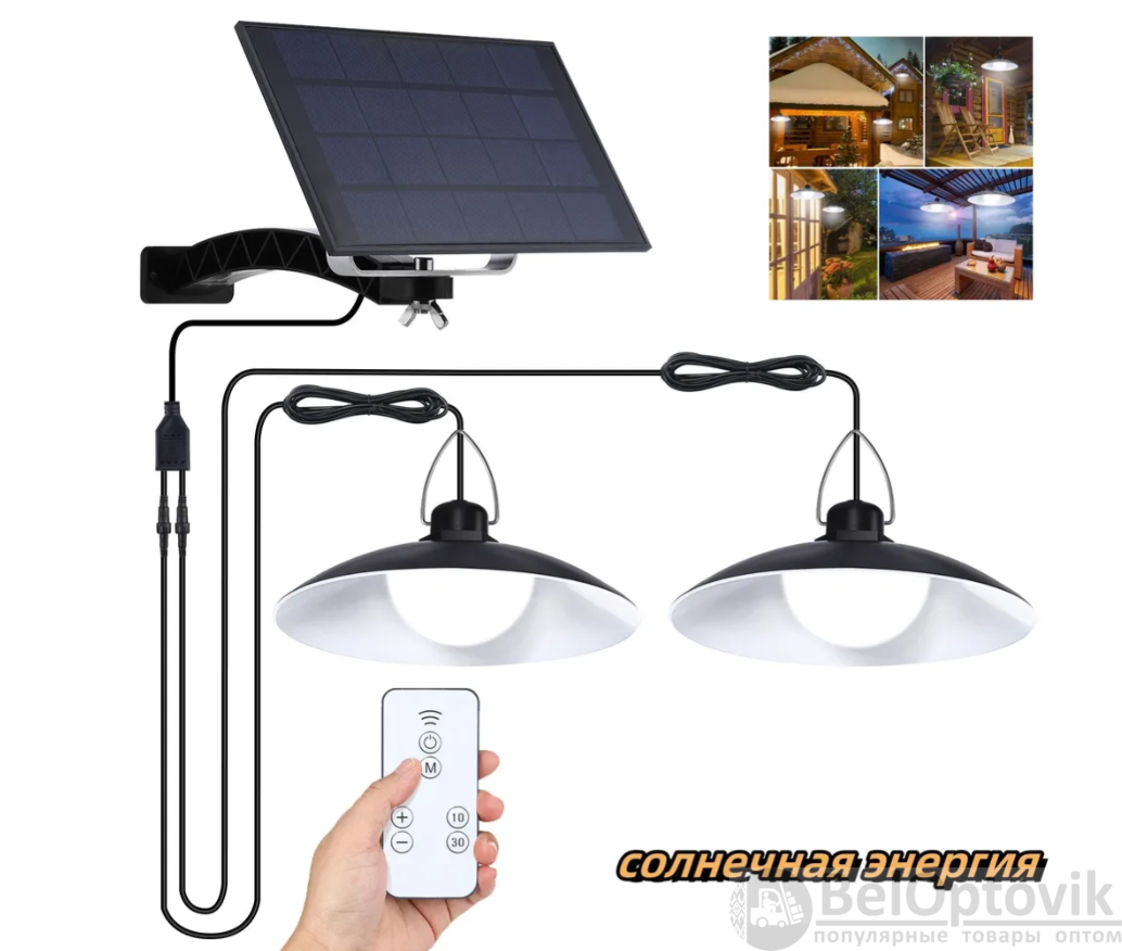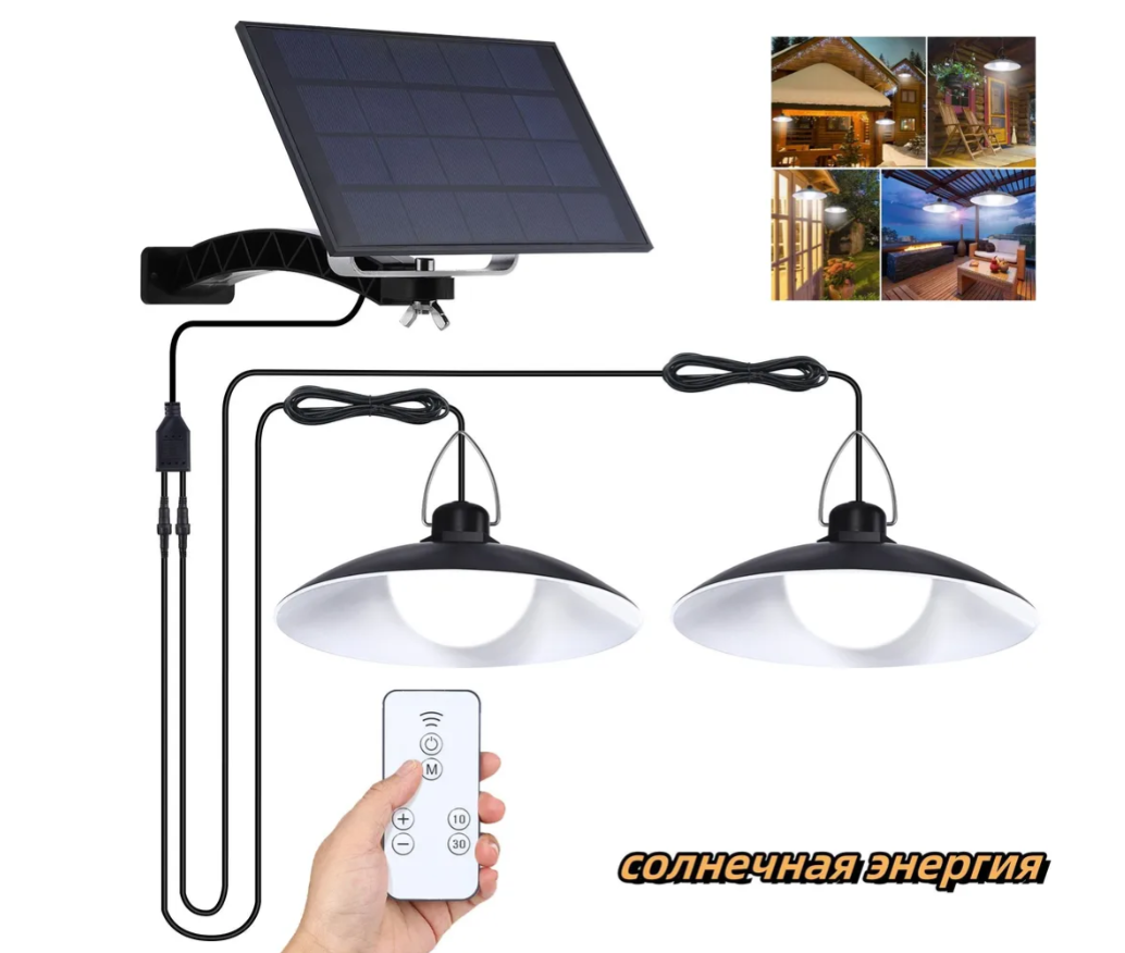 Что такое Cветодиодный подвесной LED светильник на солнечной батарее с пультом управления, 2 лампы