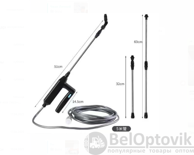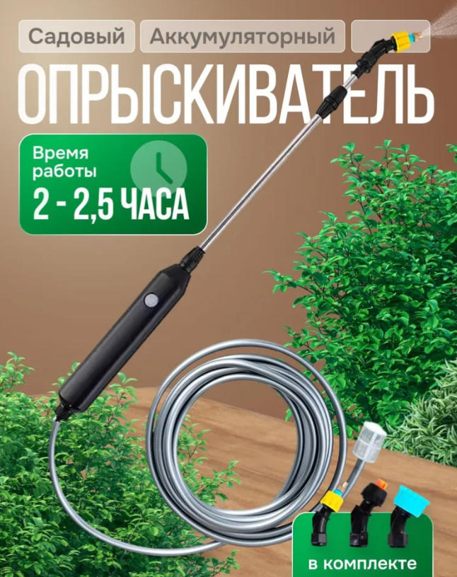 Опрыскиватель аккумуляторный садовый 2400 мАч шланг 5 метров - 1шт.;