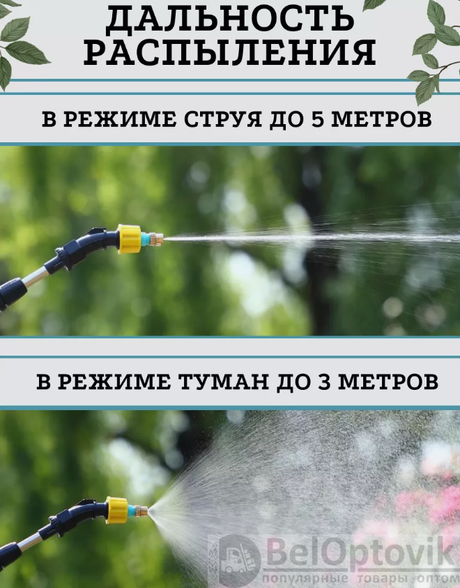 Аккумуляторный опрыскиватель позволяет быстро и эффективно обрабатывать растения защищая их от сорняков, вредителей и жуков. Используя его как пульверизатор для растений или распылитель для цветов, вы можете равномерно распылять воду или использовать удобрения для рассады, хорус, бордосскую жидкость и другие фунгициды для сада или огорода.Опрыскиватель садовый для деревьев обладает рядом преимуществ. Во-первых, его эргономичная ручка обеспечивает удобство использования, позволяя работать с ним длительное время без утомления. Телескопическая штанга удлиняется до 51 см, и поможет достигать самых верхних ветвей. Длинный шланг для воды длиной 5 метров обеспечивает большую свободу движения и доступ к самым отдаленным участкам.
