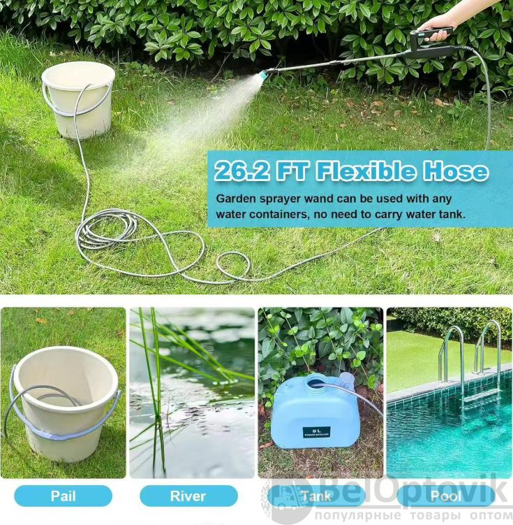 Купить Опрыскиватель аккумуляторный садовый 2400 мАч шланг 5 метров на нашем сайте можно оптом от 20 шт. или не менее 5, если Вы покупаете у нас и другие товары (сборный заказ).