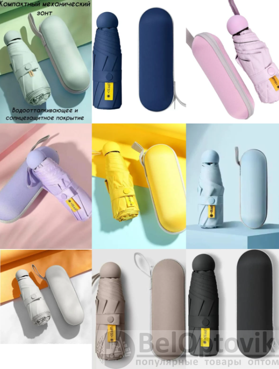 Купить Зонт мини складной компактный в чехле / Механический антиветер, выбор цвета на нашем сайте можно ОПТОМ от 20 ед. или не менее 5 ед. при формировании сборного заказа.