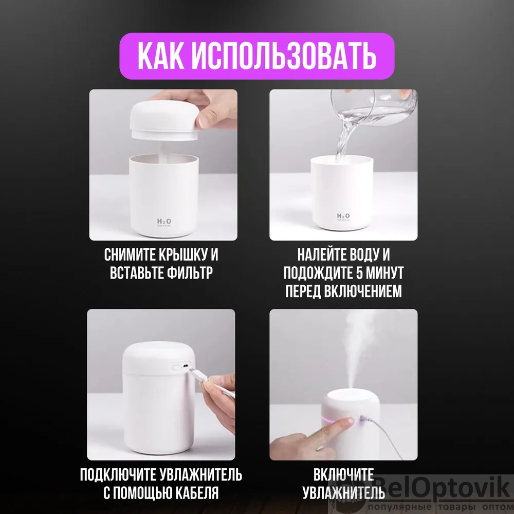 Купить Увлажнитель воздуха с функцией аромадиффузора и ночника H2O MN-2001, 300 мл, автоотключение, низкий уровень шума, белый / Идеальный микроклимат для вашего дома на нашем сайте можно ОПТОМ от 20 шт. или меньше, если Вы покупаете у нас и другие товары (сборный заказ)