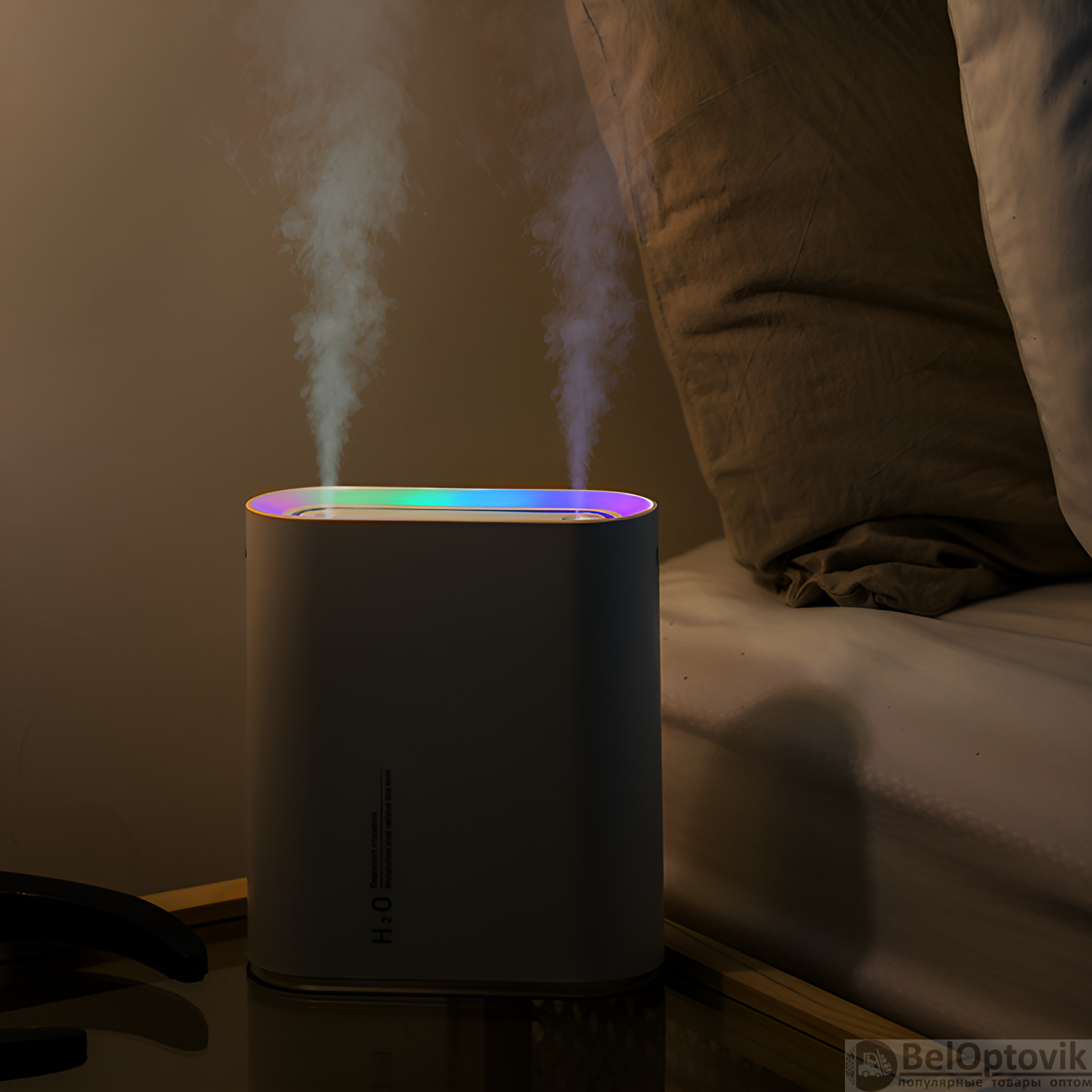 Почему купить Увлажнитель с двойным распылителем и бегущей подсветкой MN-138, 1.0–2.5 литра, 2 распылителя, питание USB, белый и розовый / Эффективное увлажнение с атмосферной подсветкой оптом выгодно у нас: