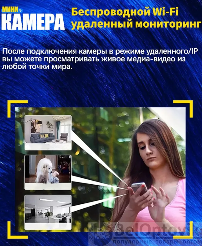 Купить Мини-камера HD 1080P Беспроводная с поддержкой Wi-Fi и функцией видеоняни на нашем сайте можно ОПТОМ от 20 штук или не менее 5, если Вы покупаете у нас и другие товары (сборный заказ).