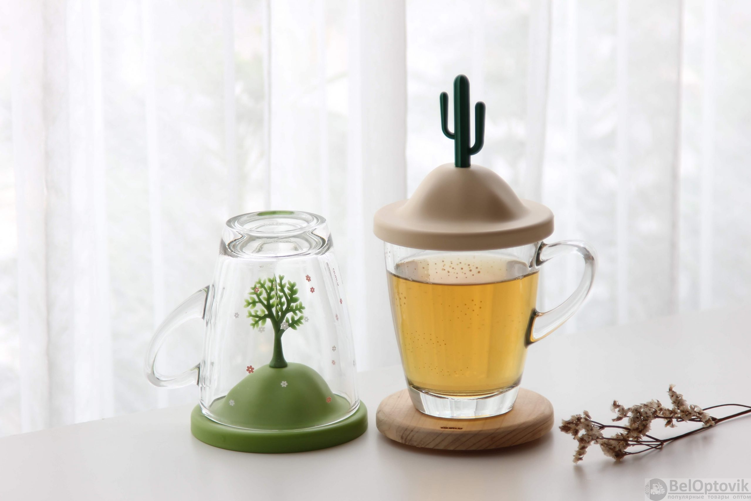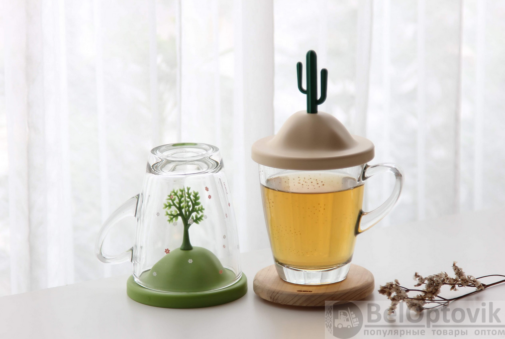 Почему купить Чашка Лето прозрачная, с подставкой - заварником оптом выгодно у нас: