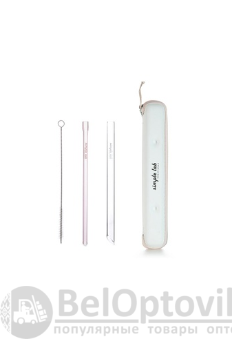 Дорожный набор трубочек стеклянных с щеточкой в контейнере / Органайзер для напитков ESSENTO - 1 шт..