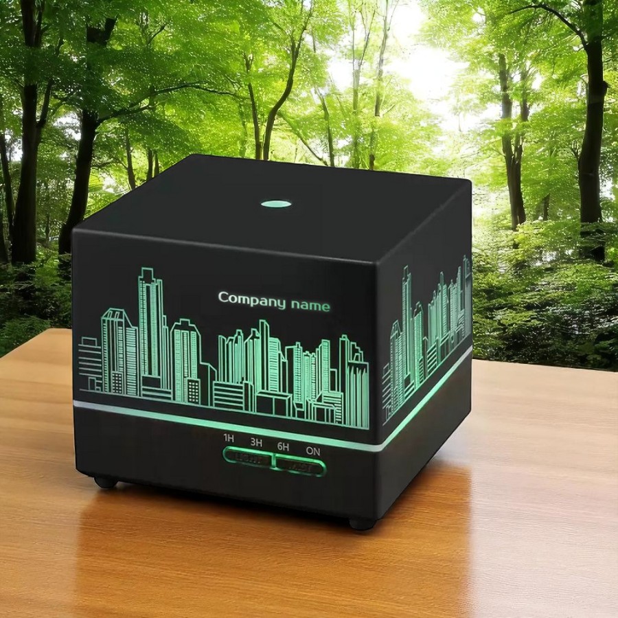 Светодиодный увлажнитель Wisdom с подсветкой гравировки - это компактное и удобное устройство, предназначенное для увлажнения воздуха в помещении. Он работает только от домашней сети 220 Вольт через блок питания из комплекта поставки Этот увлажнитель оснащен светодиодной подсветкой, которая создает уютную атмосферу и приятное освещение. Кроме того, на корпус увлажнителя можно нанести любое изображение под гравировку, что делает его отличным подарком или корпоративным сувениром. Выгравированный рисунок подсвечивается в цвет подсветки (можно установить конкретный цвет из палитры цветов, либо выбрать режим автоматического изменения цветов) Увлажнитель Wisdom легко заполняется водой и обеспечивает равномерное распыление влаги, что помогает увлажнить сухой воздух и создать комфортные условия в помещении. Он также может быть использован с эфирными маслами для ароматического увлажнения воздуха. Управляется с кнопок на лицевой панели увлажнителя, и с дистанционного пульта, входящего в комплект поставки.