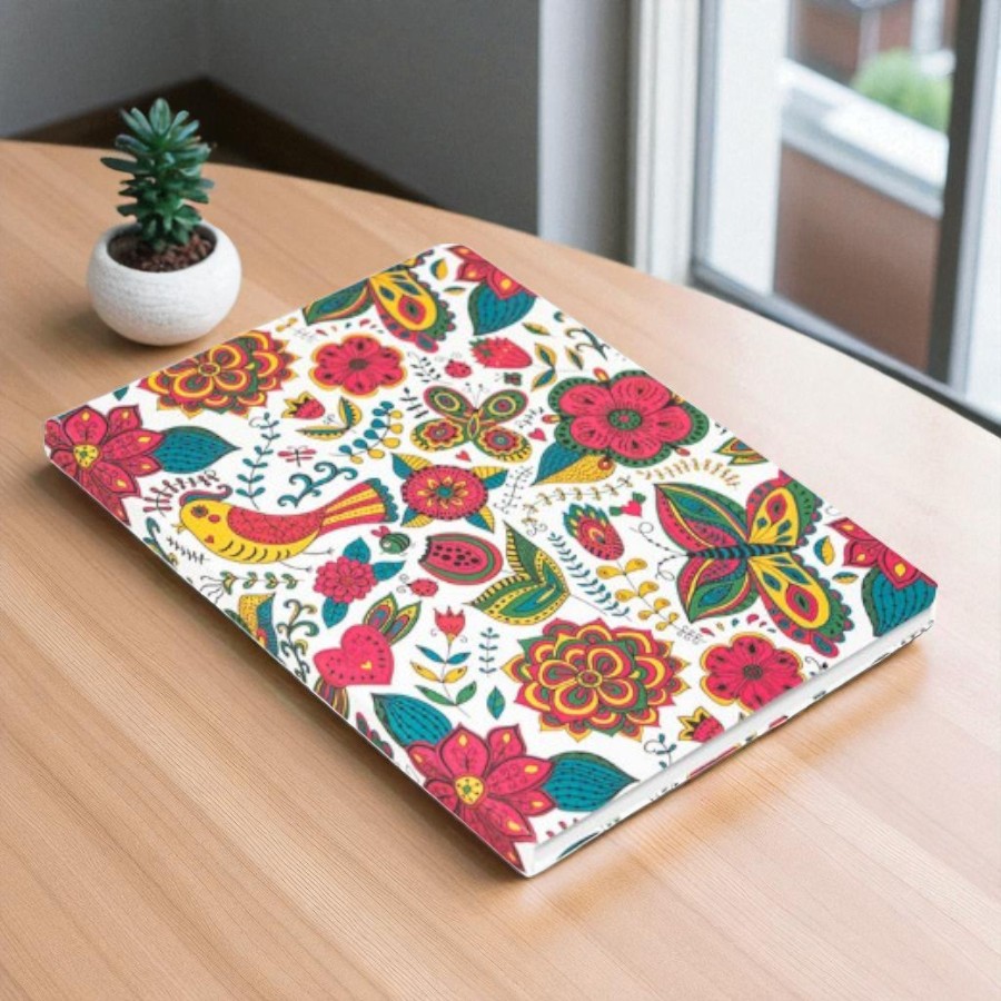 Теплый летный день, цветы, птицы, бабочки. Прекрасное летнее настроение обеспечено при одном только взгляде на этот яркий блокнот. Бархатный ламинат обложки, оригинальный форзац под раскраску, ляссе в тон. Фантазируйте, размышляйте и записывайте свои мысли по любому поводу в этот стильный и милый блокнот.