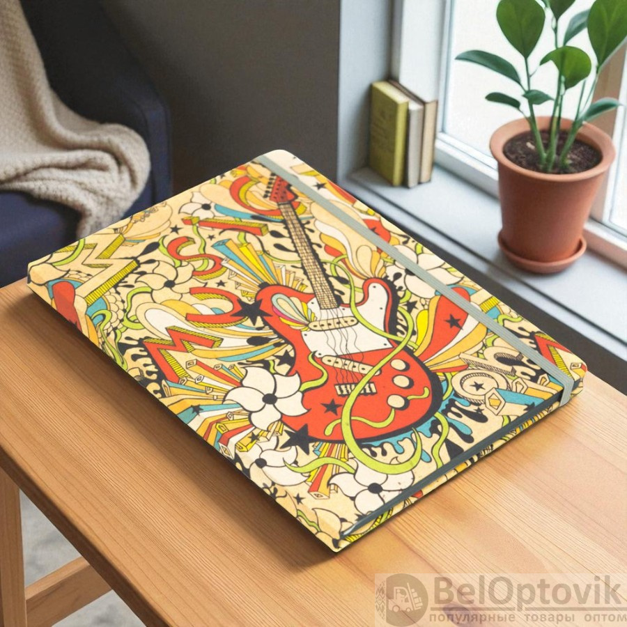 Отличное настроение и любимая музыка – эти вещи неразрывно связаны! Веселый, летний блокнот с музыкальной гитарой на обложке дополнит вашу коллекцию стильных и милых вещей! Попробуйте раскрасить индивидуальный форзац блокнота в любимые цвета! И непременно запишите в нем свои самые важные мысли и планы!