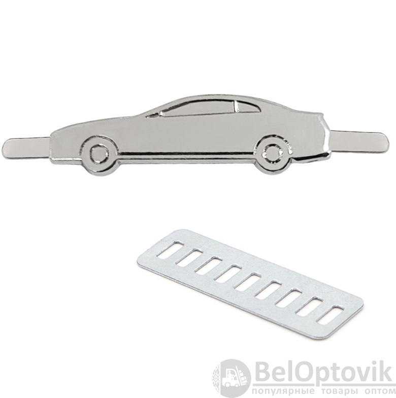 Металлический шильд в форме автомобиля — стильное и оригинальное украшение для ваших изделий и аксессуаров. Выполненный из прочного металла с серебристым покрытием, шильд отличается высокой износостойкостью и элегантным внешним видом.