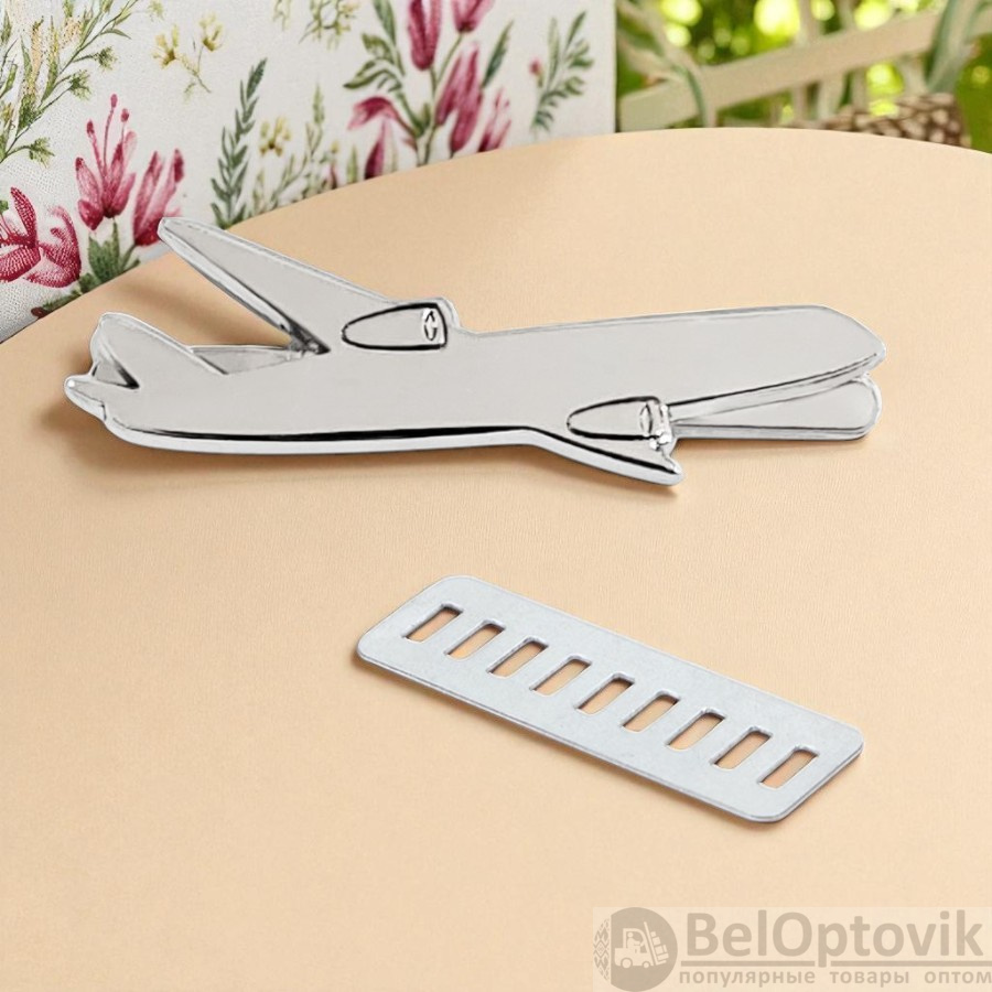 Металлический шильд в форме самолета — стильное и оригинальное украшение для ваших изделий и аксессуаров. Выполненный из прочного металла с серебристым покрытием, шильд отличается высокой износостойкостью и элегантным внешним видом.