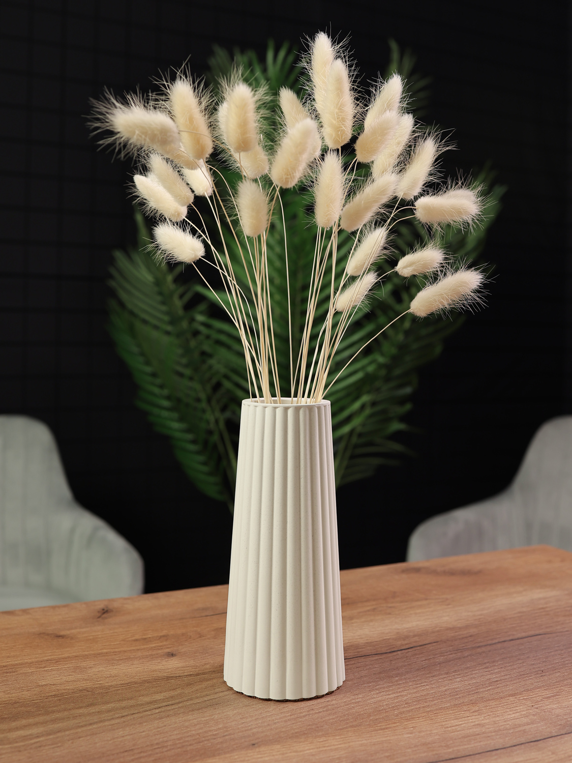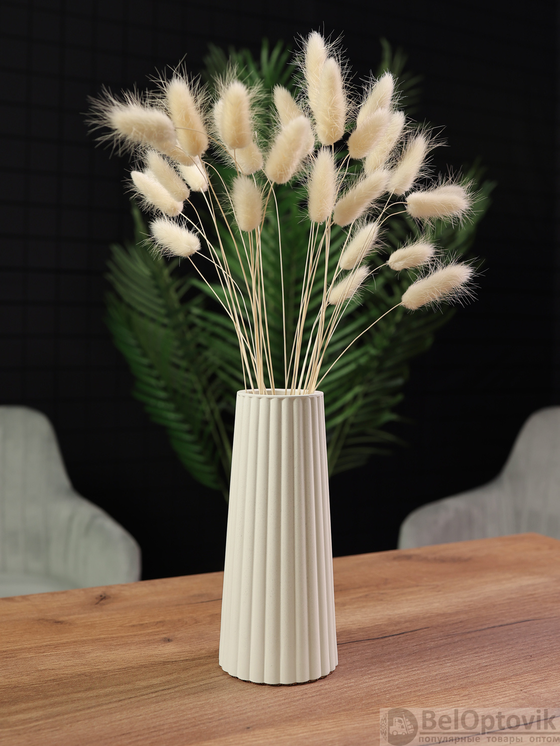 Ваза для сухоцветов из гипса — это воплощение элегантного минимализма и практичности. Её спокойный оттенок «белый песок» и рельефная текстура делают её самодостаточным элементом декора, который привнесет в ваш интерьер уют и стиль. Идеально подходит для композиций из сухоцветов, злаков или искусственных веток, она станет изящным акцентом в гостиной, спальне или офисе.