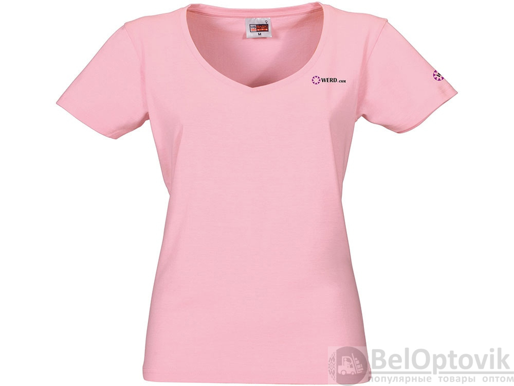 Женская футболка из натурального хлопка с элегантным V-образным вырезом. Материал отлично подходит для нанесения рекламной информации. Натуральная ткань не вызывает раздражения кожи.