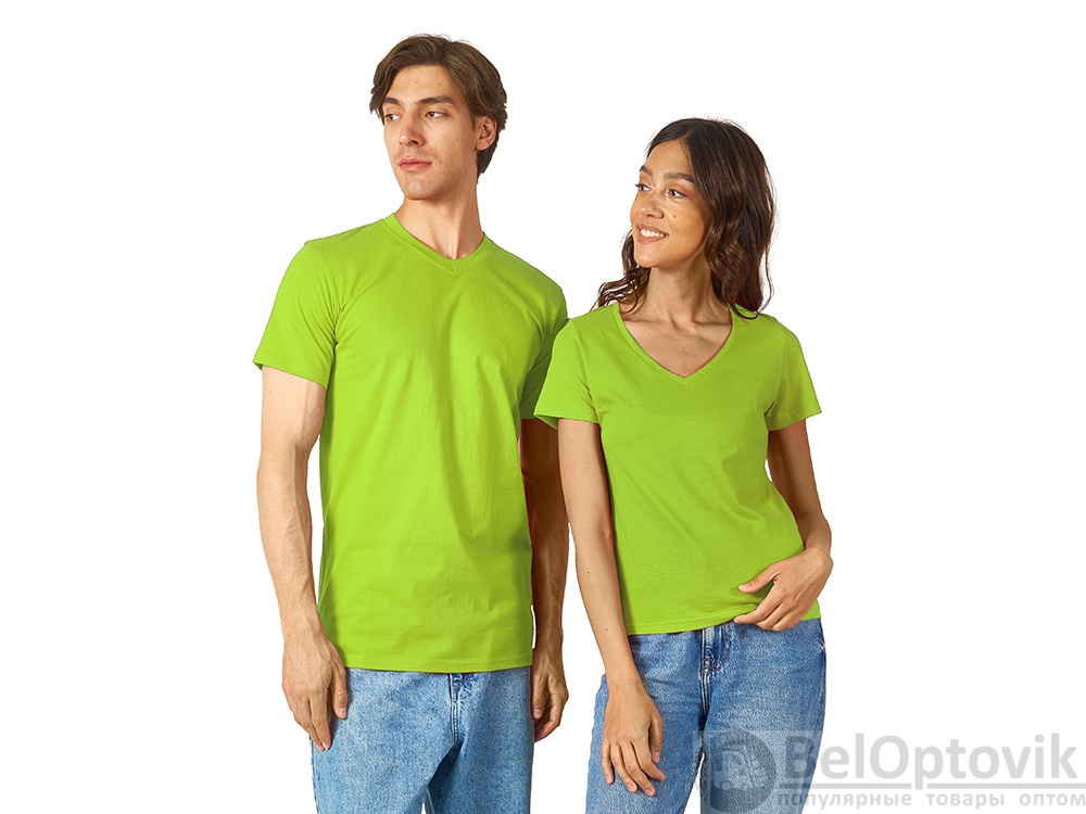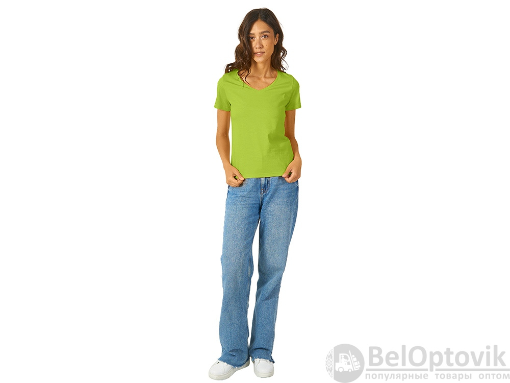 Женская футболка из натурального хлопка с элегантным V-образным вырезом. Материал отлично подходит для нанесения рекламной информации. Натуральная ткань не вызывает раздражения кожи.