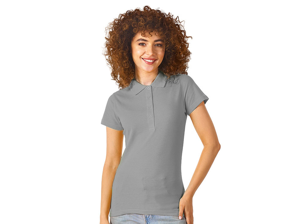 Женская рубашка-поло First. Воротник 1х1. Обшивка внутри воротника. Мужская и детская модели с 2 пуговицами, женская - с 4 пуговицами. Пуговицы с гравировкой в тон. Пике, 100% хлопок. 160 г/м2.