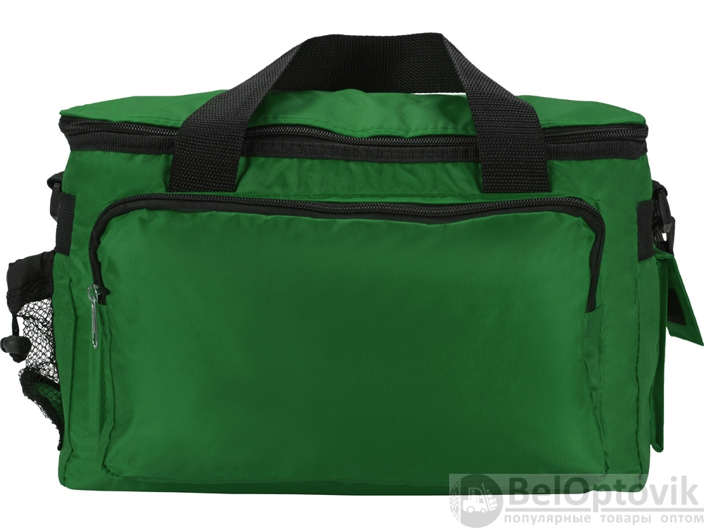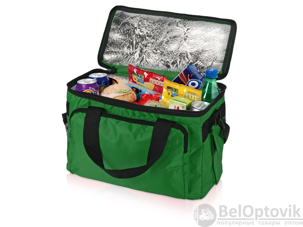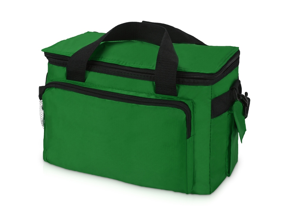 Вместительная сумка-холодильник (объем – 15 л.) «Камайоре» прекрасно подойдет не только для индивидуальных пикников, но даже и для доставки горячих продуктов (пиццы, например). С боков 2 кармана – один сетчатый с регулируемой затяжкой для бутылки. Другой для приборов, салфеток или других мелочей закрывается на липучку. Наружный слой сделан из полиэстера, на него может быть нанесена персонализация: имя владельца или логотип компании.