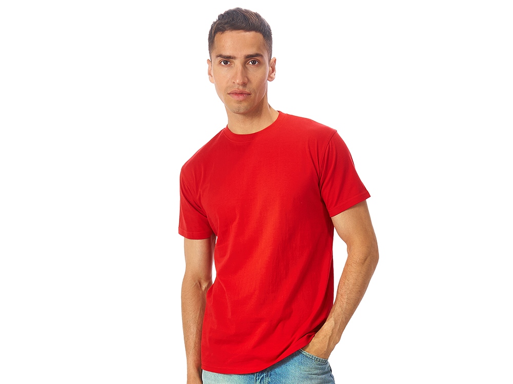 Мужская футболка сшита из натурального хлопка без боковых швов. Отлично подходит для нанесения рекламной информации. Возможна вышивка или трафаретная печать. Натуральный материал не вызывает раздражения кожи.