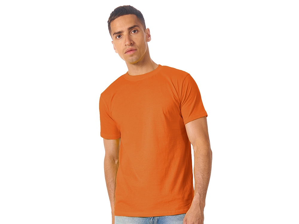 Мужская футболка сшита из натурального хлопка без боковых швов. Отлично подходит для нанесения рекламной информации. Возможна вышивка или трафаретная печать. Натуральный материал не вызывает раздражения кожи.