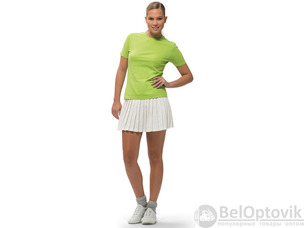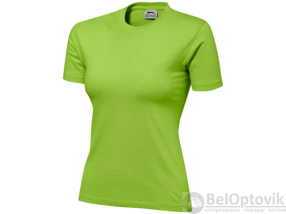 Женская футболка с короткими рукавами Ace. Модель стандартной посадки. Женская и детская модели - со швами по бокам. Резинка с эластаном и двойной строчкой на воротнике. Лента от плеча к плечу. Однослойная джерси, 100% хлопок. 150 г/м².