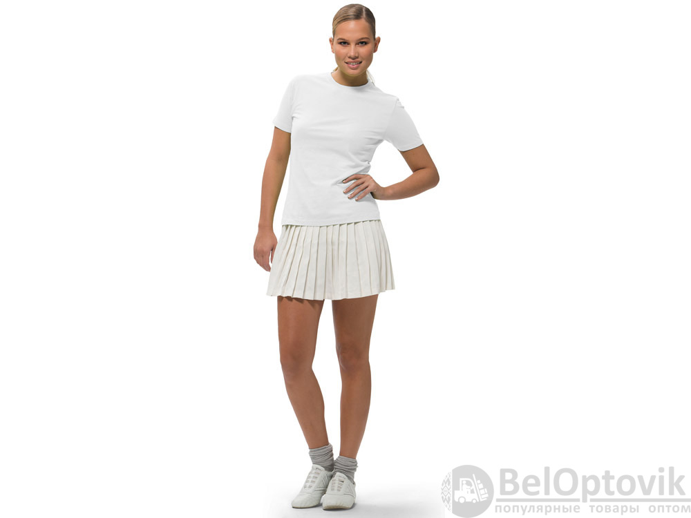 Женская футболка с короткими рукавами Ace. Модель стандартной посадки. Женская и детская модели - со швами по бокам. Резинка с эластаном и двойной строчкой на воротнике. Лента от плеча к плечу. Однослойная джерси, 100% хлопок. 150 г/м².