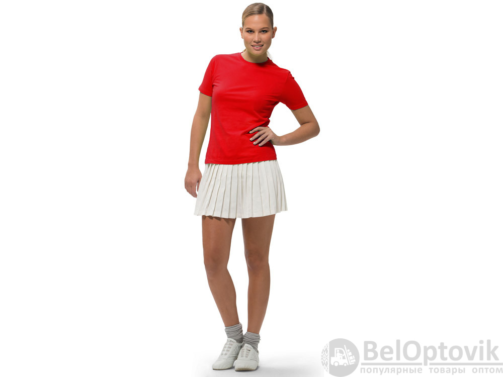 Женская футболка с короткими рукавами Ace. Модель стандартной посадки. Женская и детская модели - со швами по бокам. Резинка с эластаном и двойной строчкой на воротнике. Лента от плеча к плечу. Однослойная джерси, 100% хлопок. 150 г/м².