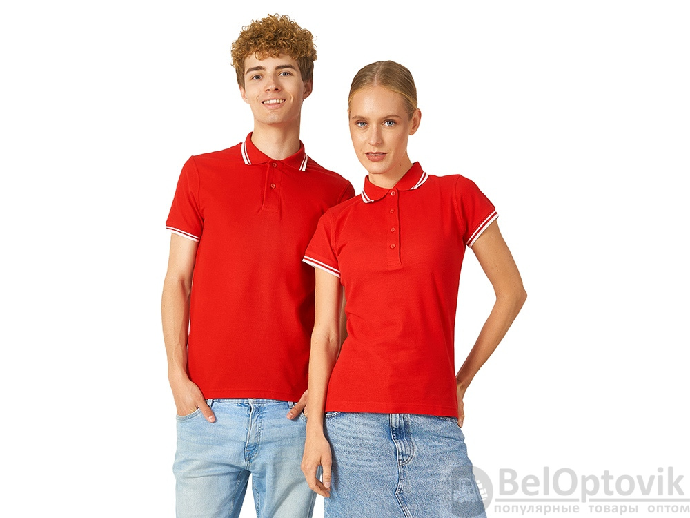 Рубашка-поло Erie с окантовкой. Воротник и манжеты резинка 1х1. Мужская модель с двумя пуговицами, женская - 4 пуговицы в тон изделия. Обшивка внутри воротника. Женская модель с разрезами по бокам. Женская модель приталена. Пике, 100% чесаный хлопок. Плотность 180 г/м2.