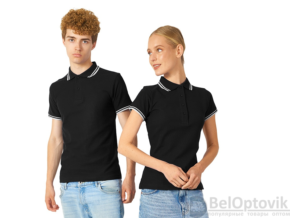 Рубашка-поло Erie с окантовкой. Воротник и манжеты резинка 1х1. Мужская модель с двумя пуговицами, женская - 4 пуговицы в тон изделия. Обшивка внутри воротника. Женская модель с разрезами по бокам. Женская модель приталена. Пике, 100% чесаный хлопок. Плотность 180 г/м2.