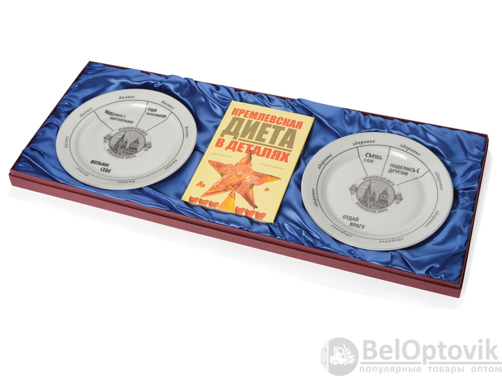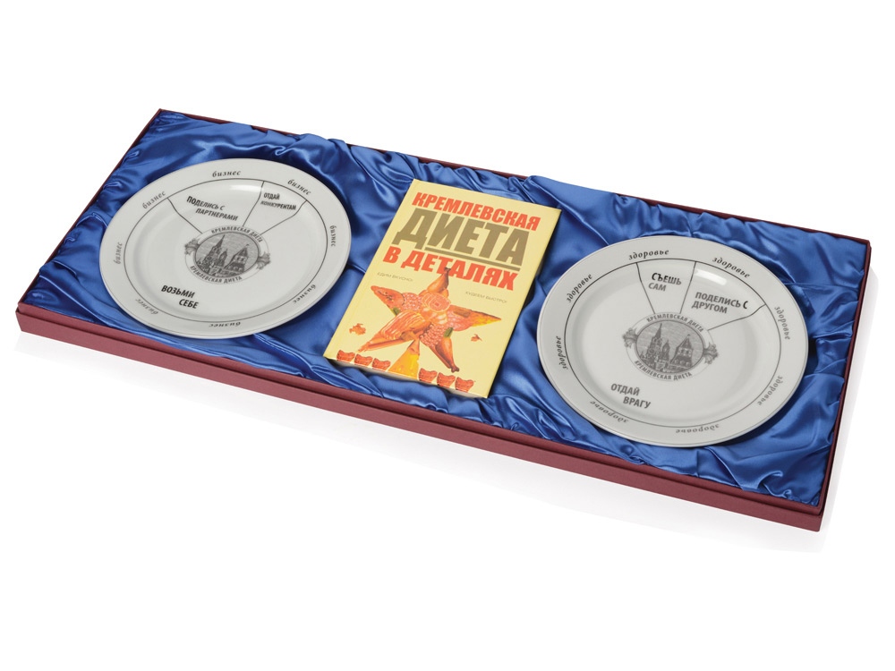 В набор входят: книга «Кремлевская диета в деталях, две тарелки.