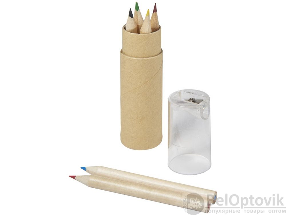Набор содержит 6 цветных карандашей и футляр с крышкой-точилкой. Отличный вариант для создания оригинального промосувенира. Крышка позволит аккуратно собрать стружку в процессе подтачивания карандашей.