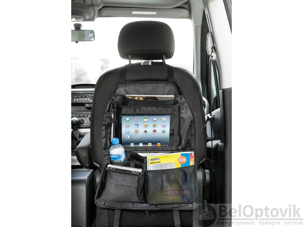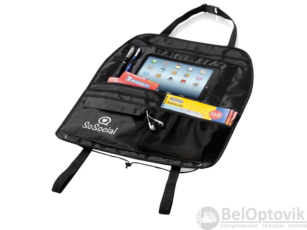 Девайс для тех, кто ценит свое время! Возможность исключительно удобно организовать рабочее пространство прямо в автомобиле дарит органайзер «Калви». Специальные отделение для планшета, авторучек и документов, застегивающееся отделение, шнурки для крепления.