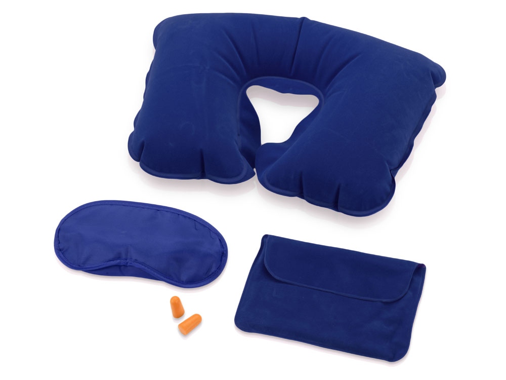 Замечательный дорожный набор включает в себя надувную подушку, маску на глаза и беруши, все это упаковано в специальный чехол. Приятная на ощупь поверхность набора обеспечит комфортный сон в любой обстановке.