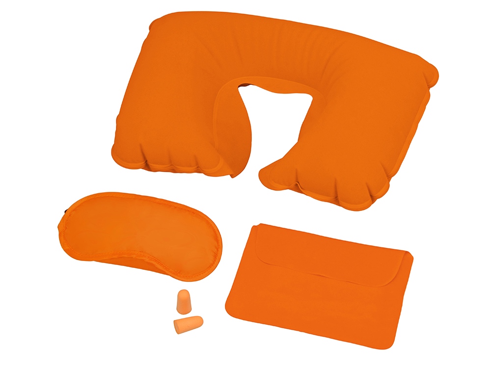Замечательный дорожный набор включает в себя надувную подушку, маску на глаза и беруши, все это упаковано в специальный чехол. Приятная на ощупь поверхность набора обеспечит комфортный сон в любой обстановке.