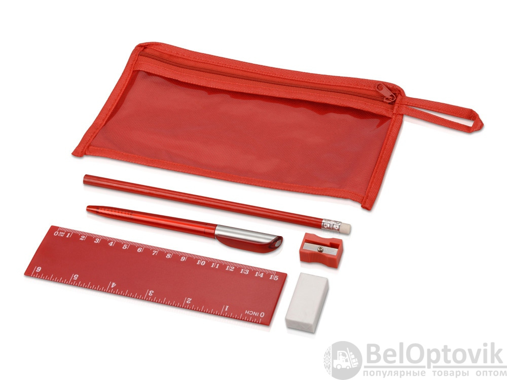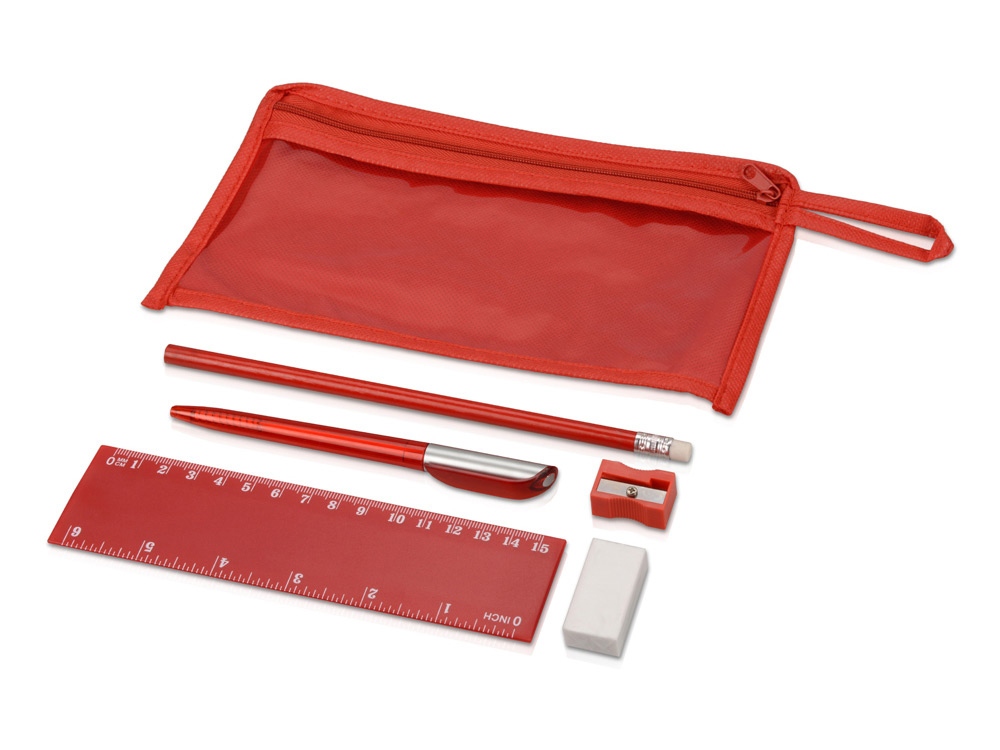 - Комплектность: ручка шариковая, карандаш, точилка, ластик, линейка, чехол
