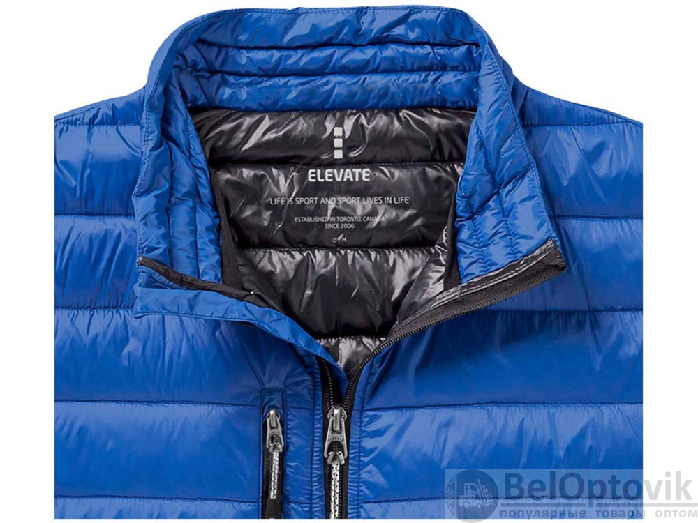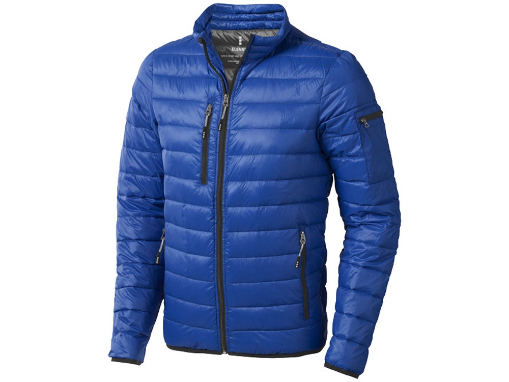 Легкая куртка Scotia. Стандартный покрой. Ткань не пропускает пух. Карманы для рук и нагрудный на молнии. Карман на рукаве на молнии можно использовать для нанесения. Резинка на манжетах и внизу куртки. Ремешки на собачку (второй комплект в цвете антрацит). Внутренний противоветровой клапан и защита подбородка. Ткань дышащая, ветронепроницаемая и влагоотталкивающая. Отражающий лого сзади. Легкий пуховик. Ткань из 100% нейлона с матовым и блестящим водоотталкивающим покрытием, 20D. 80% пух и 20% перо. 115 г/м².
