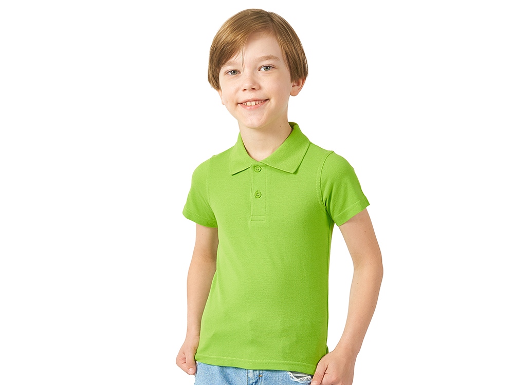 Детская рубашка поло First. Воротник 1х1. Обшивка внутри воротника. Мужская и детская модели с 2 пуговицами, женская - с 4 пуговицами. Пуговицы с гравировкой в тон. Пике, 100% хлопок. 160 г/м².