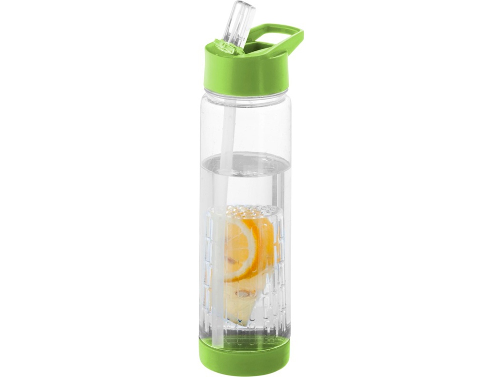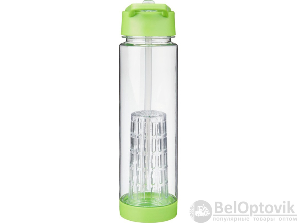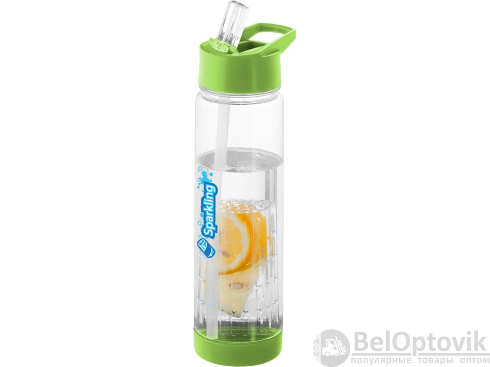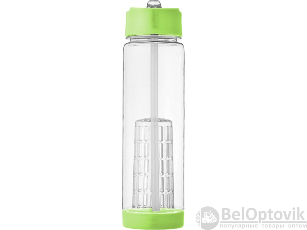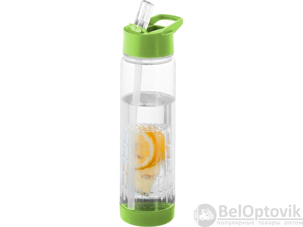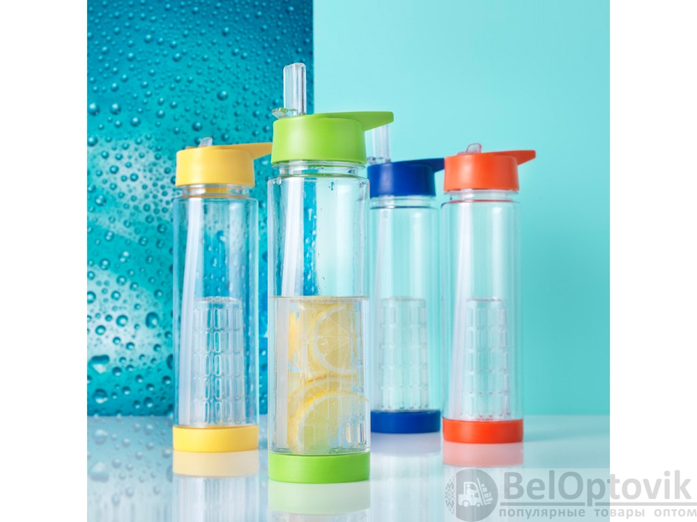 Оригинальная бутылка для воды. Благодаря отделению для фруктов есть возможность создания лимонада на свой вкус. Придется по вкусу любителям натуральных продуктов и здорового образа жизни. Легко разбирается. На пластиковый корпус возможно нанесение тампопечати. Объем – 740 мл.