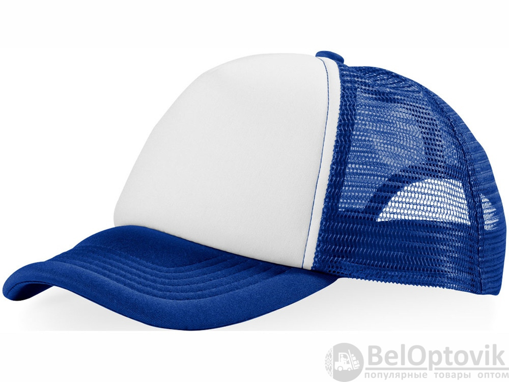 Кепка из 5 панелей Trucker. Оригинальная кепка на окружность головы 58 см с передней поролоновой частью, пластиковой сеткой сзади и пластиковой застежкой. Эта кепка полностью соответствует требованиям к соединениям AZO, формальдегиду и ПХФ. Полиэстер и поролон.