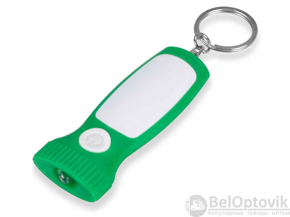 Яркий брелок со встроенным фонариком. Плоская форма и большая ручка с белой вставкой делает брелок удобным для нанесения логотипа.