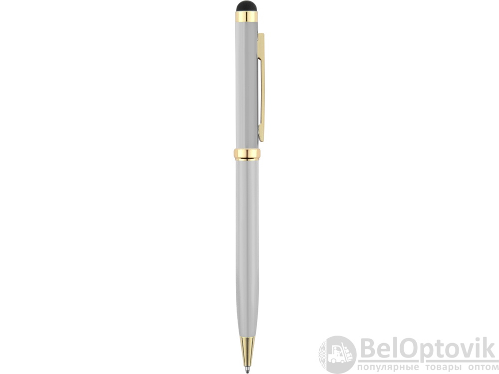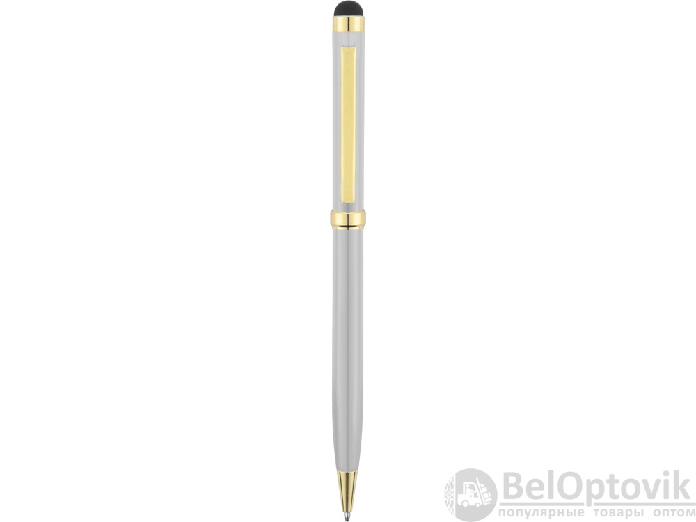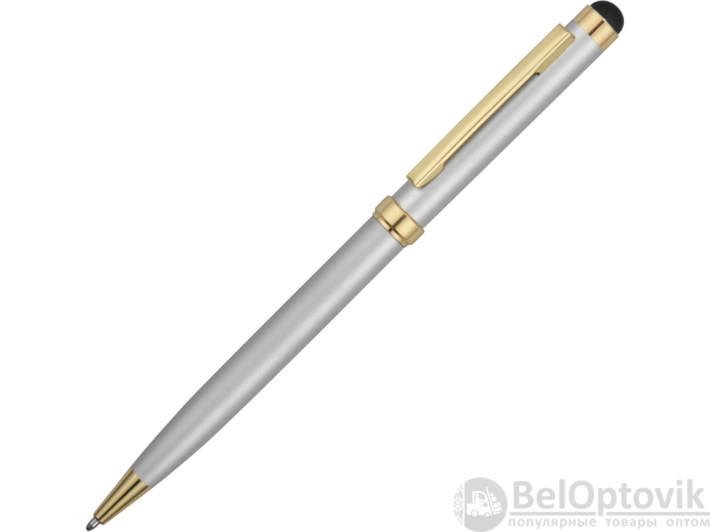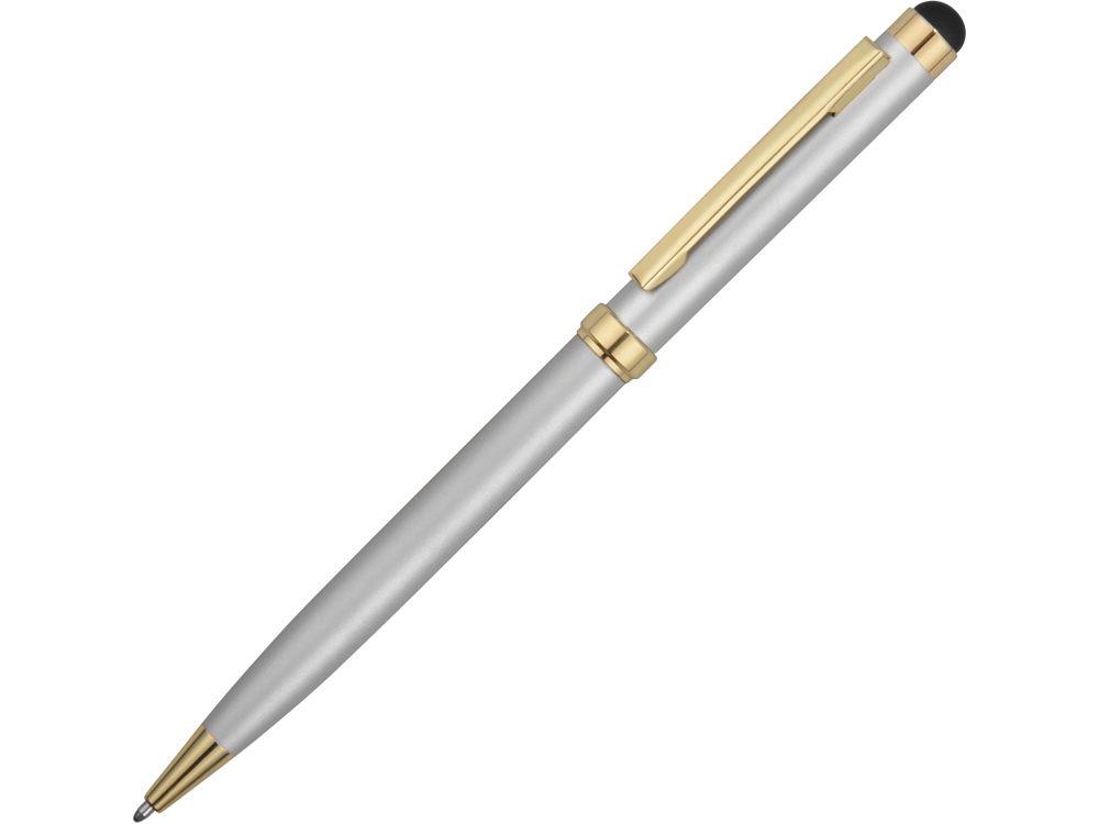 Стильная металлическая ручка со стилусом «Голд Сойер» – по-настоящему универсальный пишущий инструмент. Ею можно делать записи на бумаге, а перевернув, работать с емкостными экранами с помощью стилуса. Элегантность ручки подчеркивают позолоченные детали: клип, носик и кольцо.