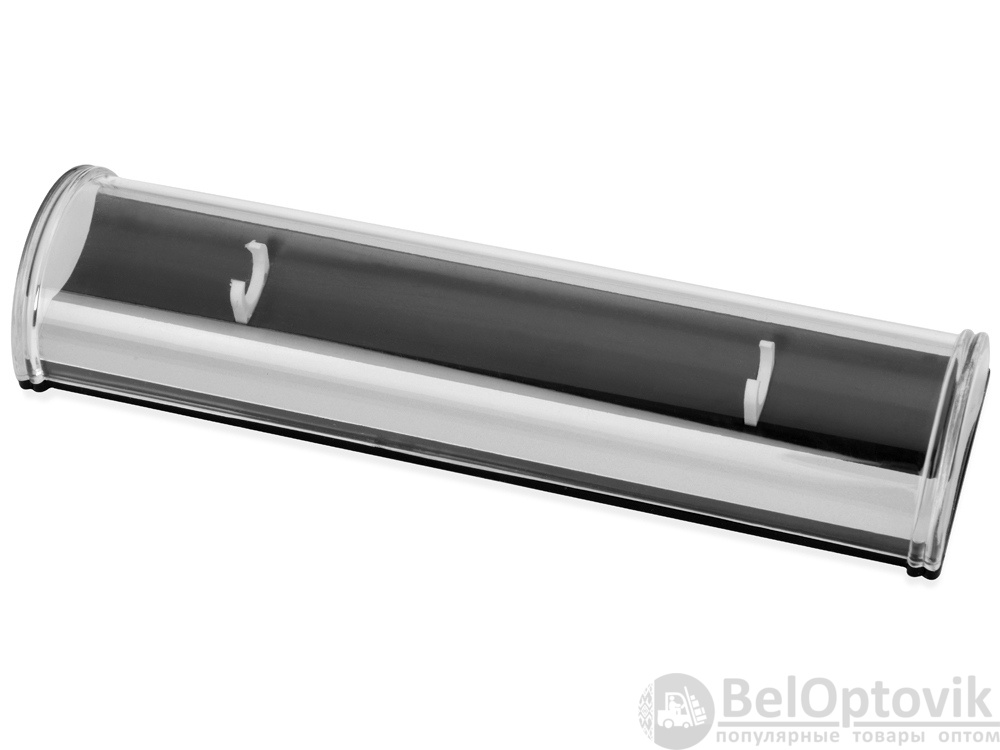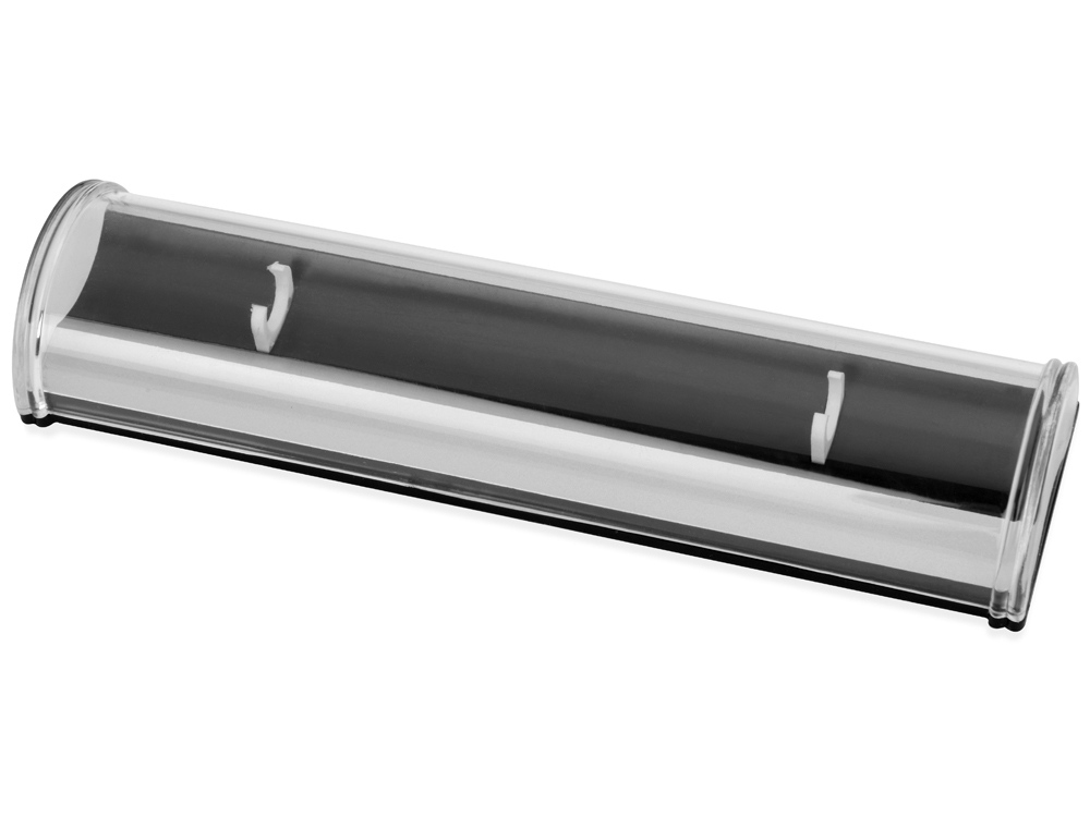 Удобный пластиковый футляр для одной ручки оснащен прозрачной крышкой и небольшими держателями. Футляр позволит оформить ручку в качестве подарка. На поверхность футляра можно нанести логотип и наименование организации.