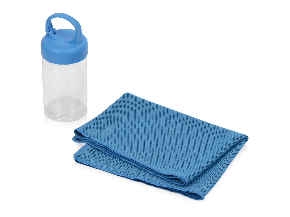 - Материал товара: бутылка- пластик, полотенце- полиэстер