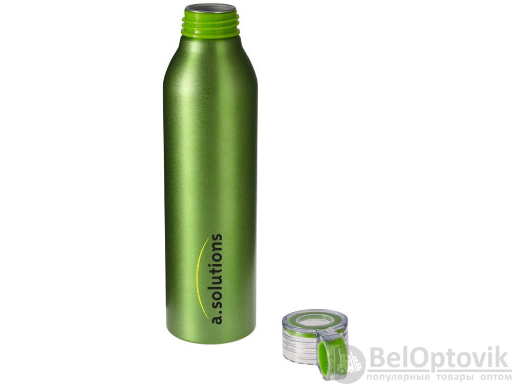 Спортивная алюминиевая бутылка Grom. Одинарные стенки. Откручивающаяся крышка с защитой от протекания и цветным акцентом. Удобная в пути. Объем 650 мл. Алюминий.