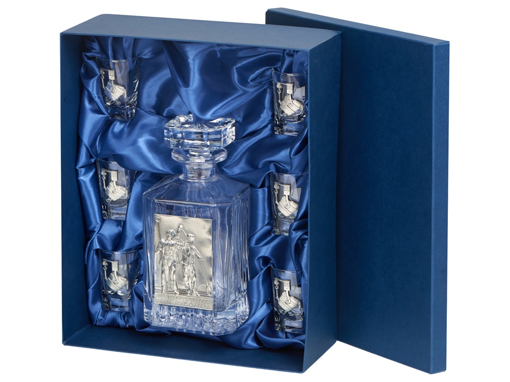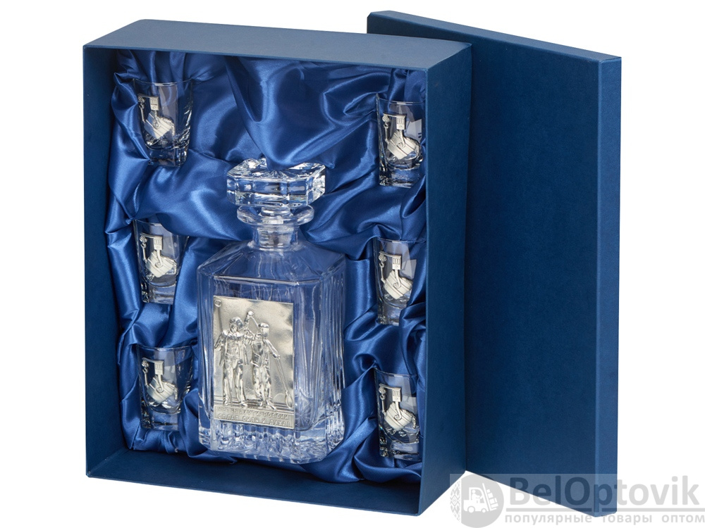 Для представителей настоящих мужских профессий и подарок должен быть соответствующий. Наш штоф, с набором рюмок, украшенный художественным литьем с эффектом антикварного серебра, является именно таким дорогим презентом.