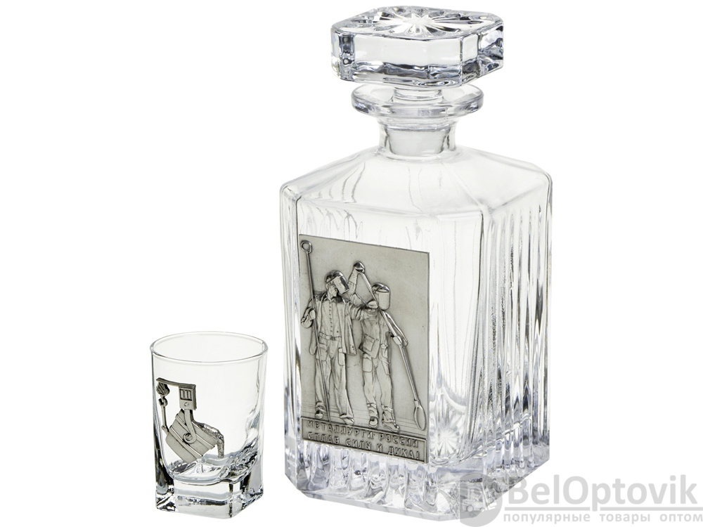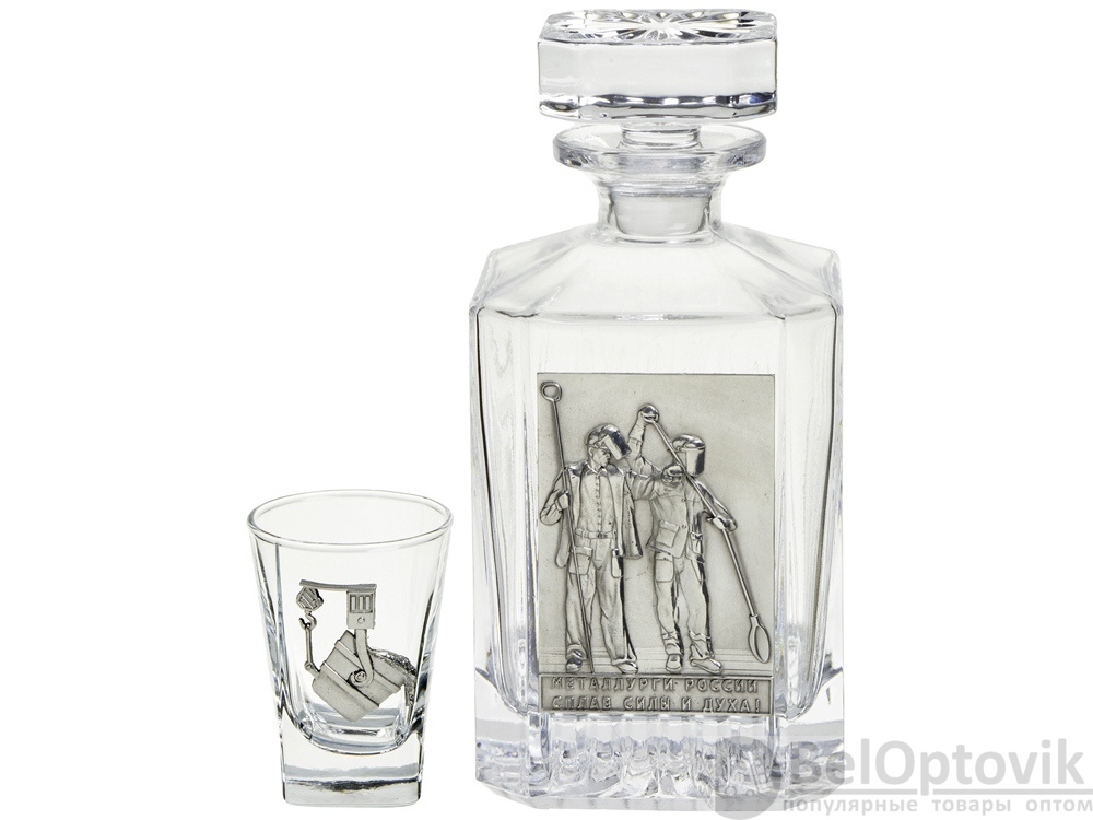 Набор для водки со штофом «Металлургический» - это отличный VIP-подарок для представителей металлургической отрасли. Подарок упакован в стильную подарочную упаковку, а сохранность набора гарантирует шелковый ложемент, который приятно оттеняет литье.