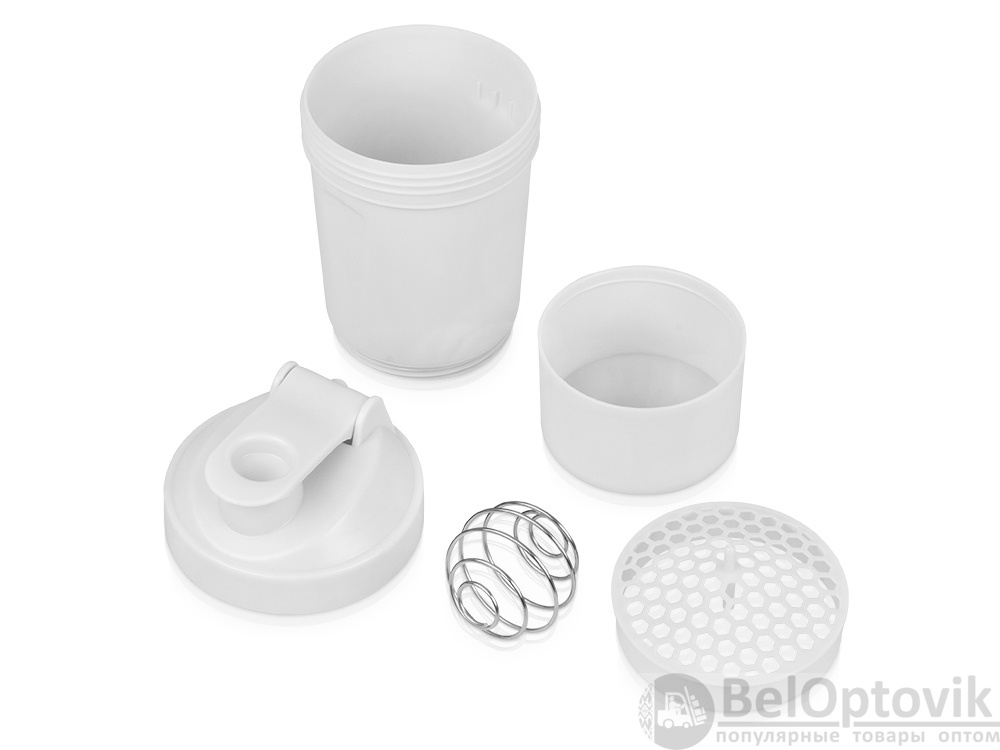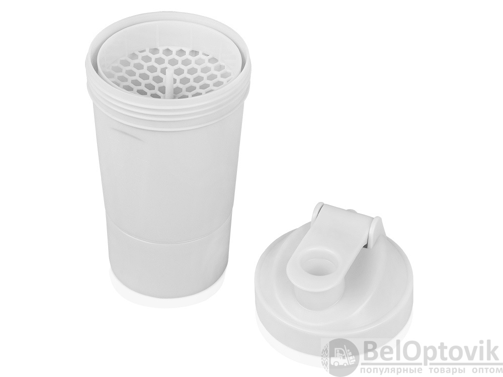 Шейкер для спортивного питания - это один из необходимых аксессуаров для спортсменов и людей, ведущих активный образ жизни. В нем можно приготовить протеиновый коктейль или фруктовый напиток. Шейкер классической формы, он удобно лежит в руке, к донышку прикручивается емкость для смешивания (таблетница), в которой можно хранить спортивные добавки: протеиновый порошок, витамины и другие концентраты. Внутри колбы имеется пластиковая сетка, чтобы процеживать спортивный напиток, а также металлический размешиватель, который растворяет порошок в напитке без комочков. Объем - 400мл. Шейкер изготовлен из пищевого пластика, он герметичен и легко моется.