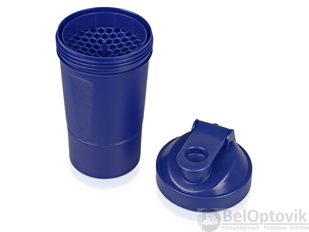 Шейкер для спортивного питания - это один из необходимых аксессуаров для спортсменов и людей, ведущих активный образ жизни. В нем можно приготовить протеиновый коктейль или фруктовый напиток. Шейкер классической формы, он удобно лежит в руке, к донышку прикручивается емкость для смешивания (таблетница), в которой можно хранить спортивные добавки: протеиновый порошок, витамины и другие концентраты. Внутри колбы имеется пластиковая сетка, чтобы процеживать спортивный напиток, а также металлический размешиватель, который растворяет порошок в напитке без комочков. Объем - 400мл. Шейкер изготовлен из пищевого пластика, он герметичен и легко моется.