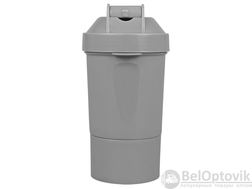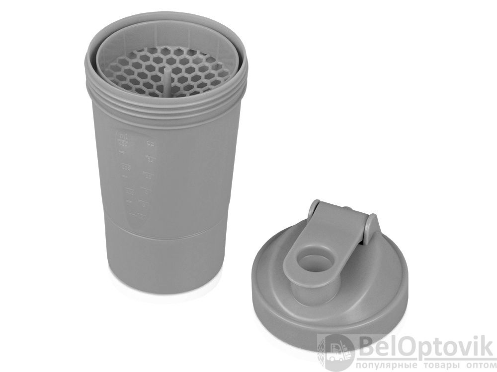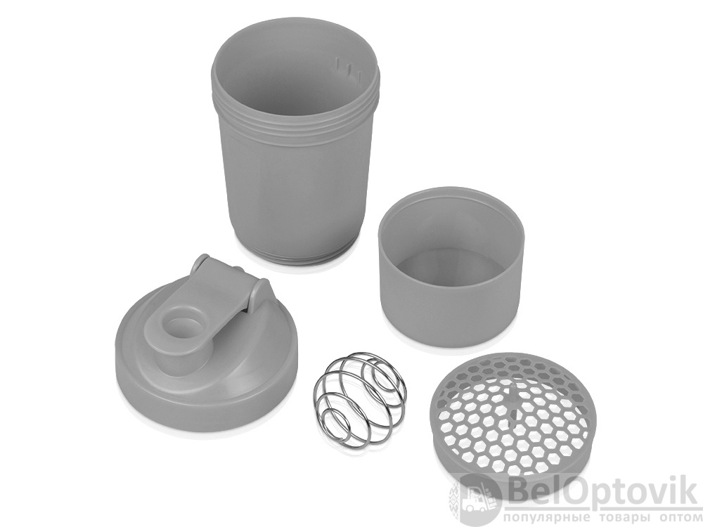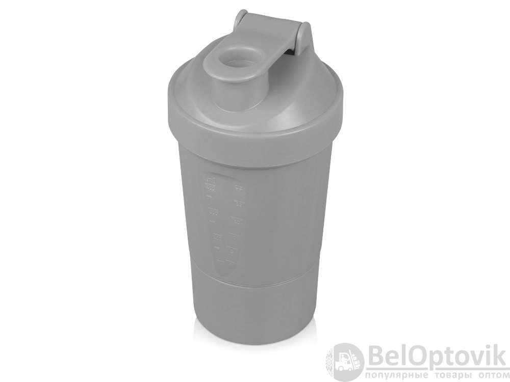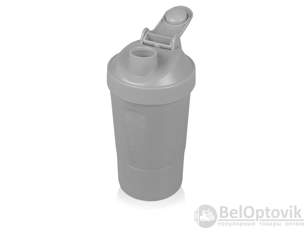 Шейкер для спортивного питания - это один из необходимых аксессуаров для спортсменов и людей, ведущих активный образ жизни. В нем можно приготовить протеиновый коктейль или фруктовый напиток. Шейкер классической формы, он удобно лежит в руке, к донышку прикручивается емкость для смешивания (таблетница), в которой можно хранить спортивные добавки: протеиновый порошок, витамины и другие концентраты. Внутри колбы имеется пластиковая сетка, чтобы процеживать спортивный напиток, а также металлический размешиватель, который растворяет порошок в напитке без комочков. Объем - 400мл. Шейкер изготовлен из пищевого пластика, он герметичен и легко моется.