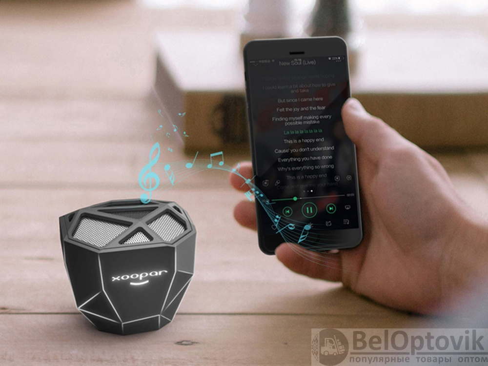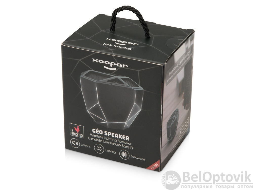 Беспроводная портативная колонка “Geo” с функцией расширенных басов изготовлена в дизайнерском стиле low-poly. Форма революционного Bluetooth-динамика напоминает мистический кристалл, а подсветка различных цветов (белая, синяя, красная, зеленая, оранжевая) добавляет таинственности. При этом ее яркость зависит от воспроизводимой музыки. Подсветку можно легко поменять, сделав три быстрых нажатия на кнопку включения и произойдет настоящая магия у вас в руках.