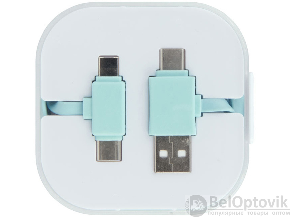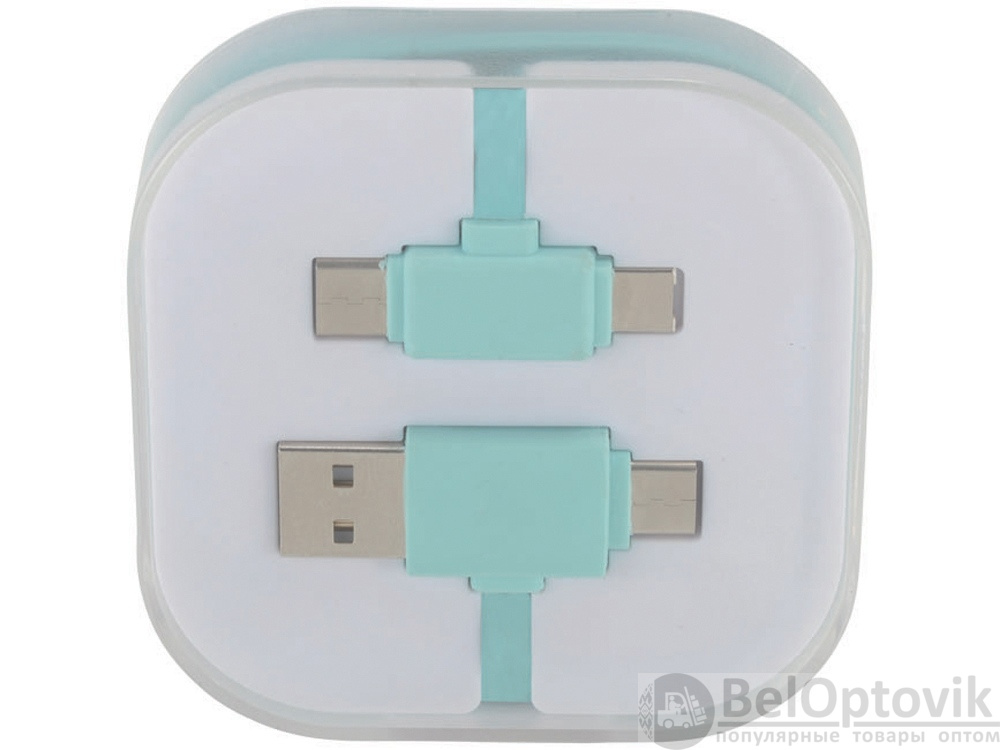 Кабель для зарядки 4-в-1 двух типов C: 1 USB типа A и 2-в-1 двухконтактных наконечников для устройств Apple iOS и Android. Используются как зарядка, так и передача данных. Чтобы зарядить устройства Apple, поместите кабель стороной, у которой нет контактов в устройстве, чтобы зарядить устройства Android, поместите кабель со стороны, в которой есть контакты в устройстве.