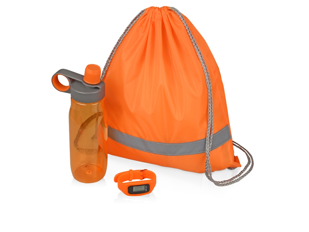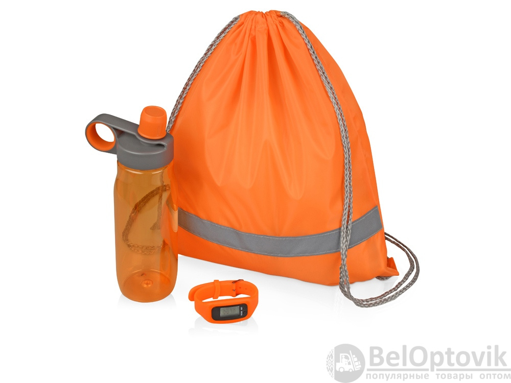 - Комплектность: рюкзак-мешок, бутылка для воды 650 мл, смарт часы с шагомером
